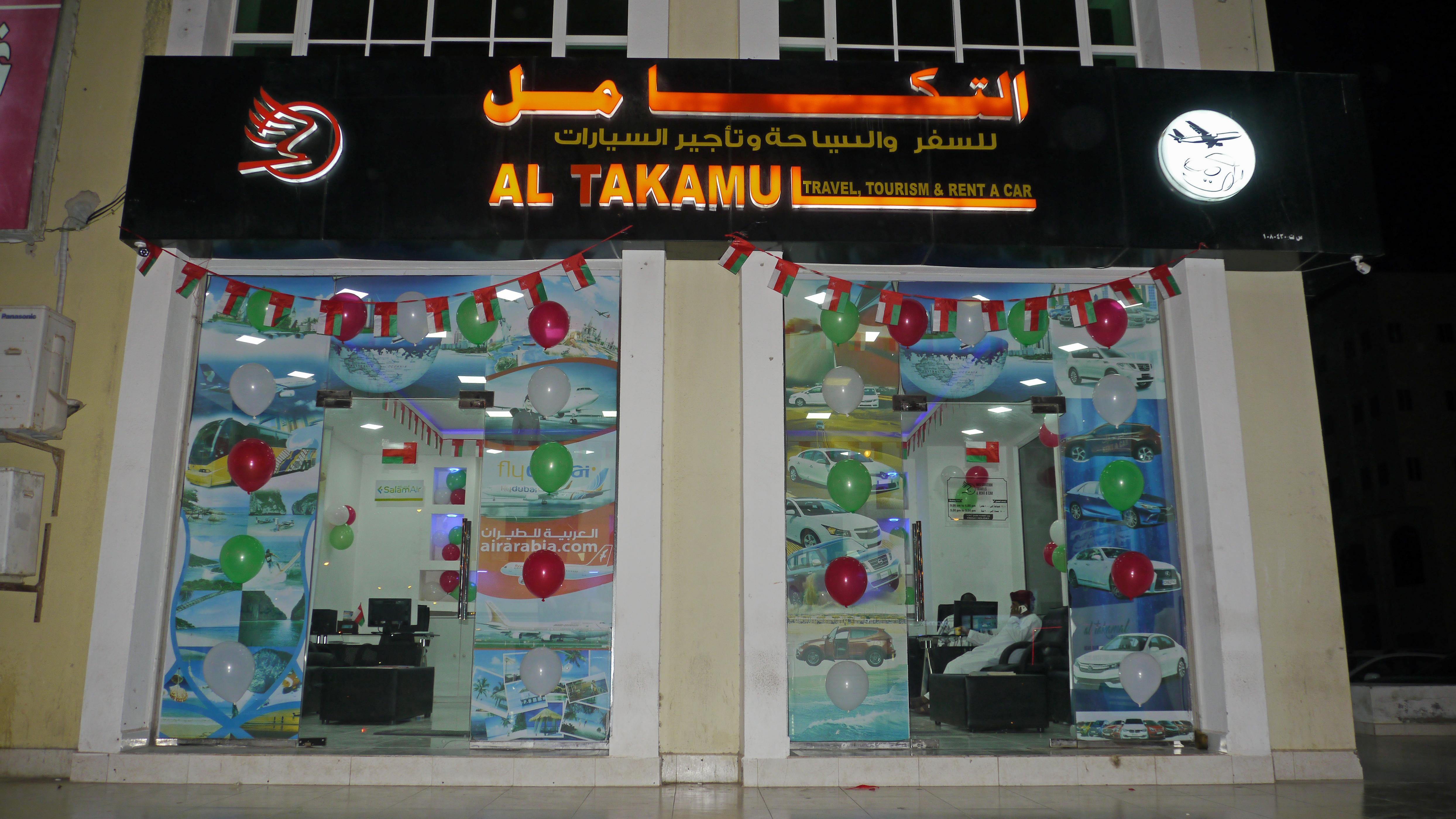 Takamul Travel je ománská společnost, kterou založil Muhammad Rajhit al-Mahrí roku 2009. Sídlo společnosti se nachází v Salále, hlavním městě provincie Dhofár v Ománu. Takamul Travel je součástí obchodního portfolia zahrnujícího developerskou činnost, prodej stavebních materiálů a makléřství finančních služeb. Takamul Travel poskytuje komplexní služby jako incomingová cestovní kancelář jak pro zahraniční partnerské kanceláře, tak pro individuální cestovatele. V nabídce máme širokou škálu exkurzí, výletů a trekkingů, které provází tým našich vícejazyčných průvodců. Prostřednictvím našich zástupců zajišťujeme také delegátský servis na hotelech pro hosty, kteří rezervují cestovní služby s Takamul Travel. Náš servis také zahrnuje prodej letenek a zajišťování individuálních i skupinových transferů mezi hotely a letištěm v Salále. Důležitou aktivitou firmy je pronájem automobilů všech kategorií. Momentálně se naše flotila skládá z 90 automobilů, které přistavujeme na všechny adresy a hotely v Salále. V roce 2020 jsme také otevřeli pobočku autopujčovny v Maskatu. Tým Takamul Travel v současnosti tvoří 22 zaměstnanců a spolupracovníků jak z Ománu, tak ze zahraničí. Velmi si také ceníme a neustále rozvíjíme obchodní spolupráci s ostatními poskytovateli turistických služeb, což nám umožňuje zaručit ten nejspolehlivější servis pro naše vážené hosty.